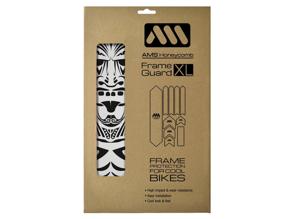 The All Mountain Style Honeycomb Frame Guard (XL) - Maori delivers ultimate bike frame protection with aggressive, standout style in a striking Maori graphic design.