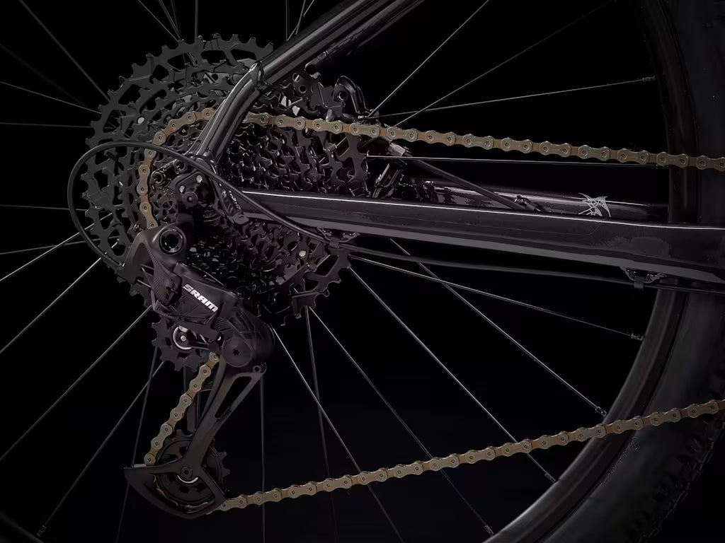 - Wide-range 12-speed drivetrain for climbing and descending